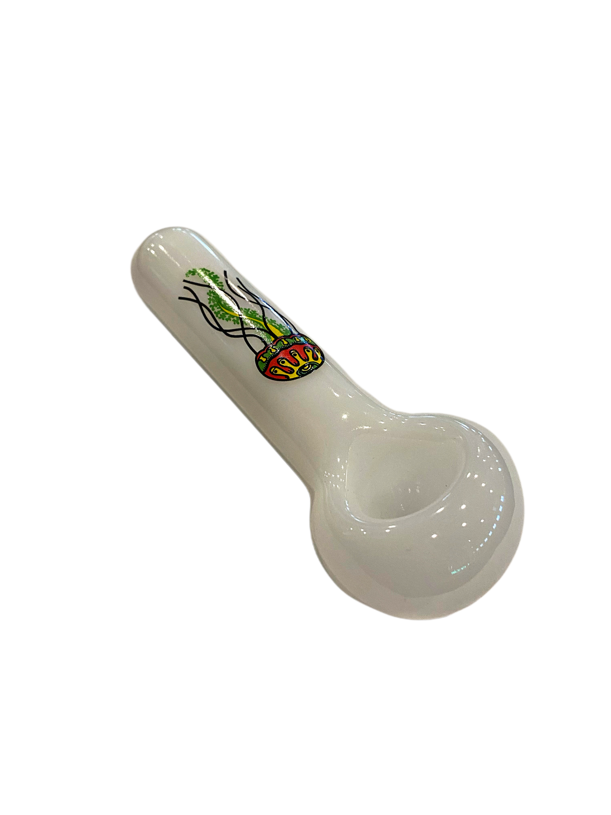Jellyfish Glass Brand Jellyfish Logo White Tube Style Spoon Pipe.