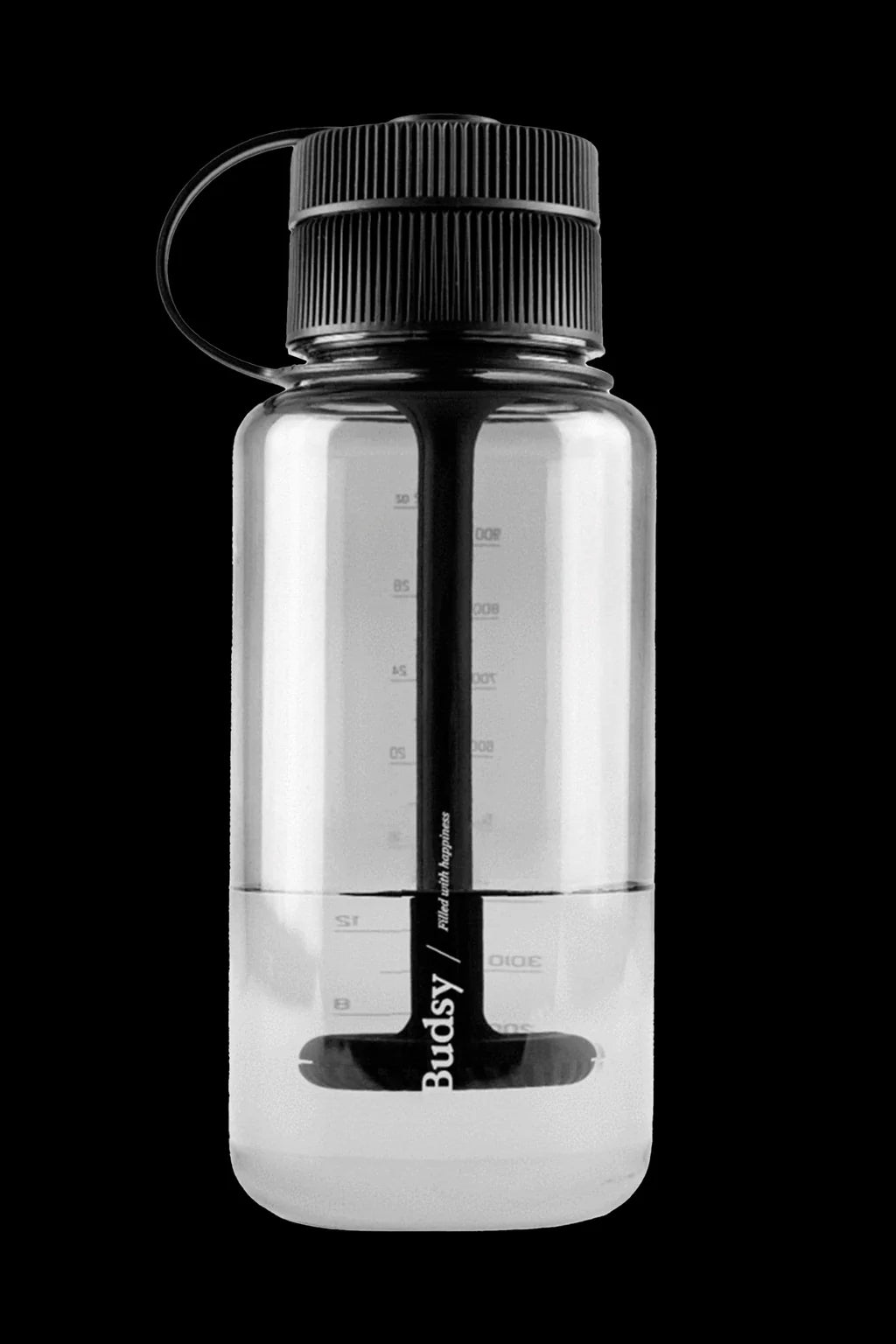 Hidden in plain sight. Budsy is a premium water pipe disguised as a simple water bottle. Its discreet, unassuming plastic exterior contains a high-performance bubbler system.
