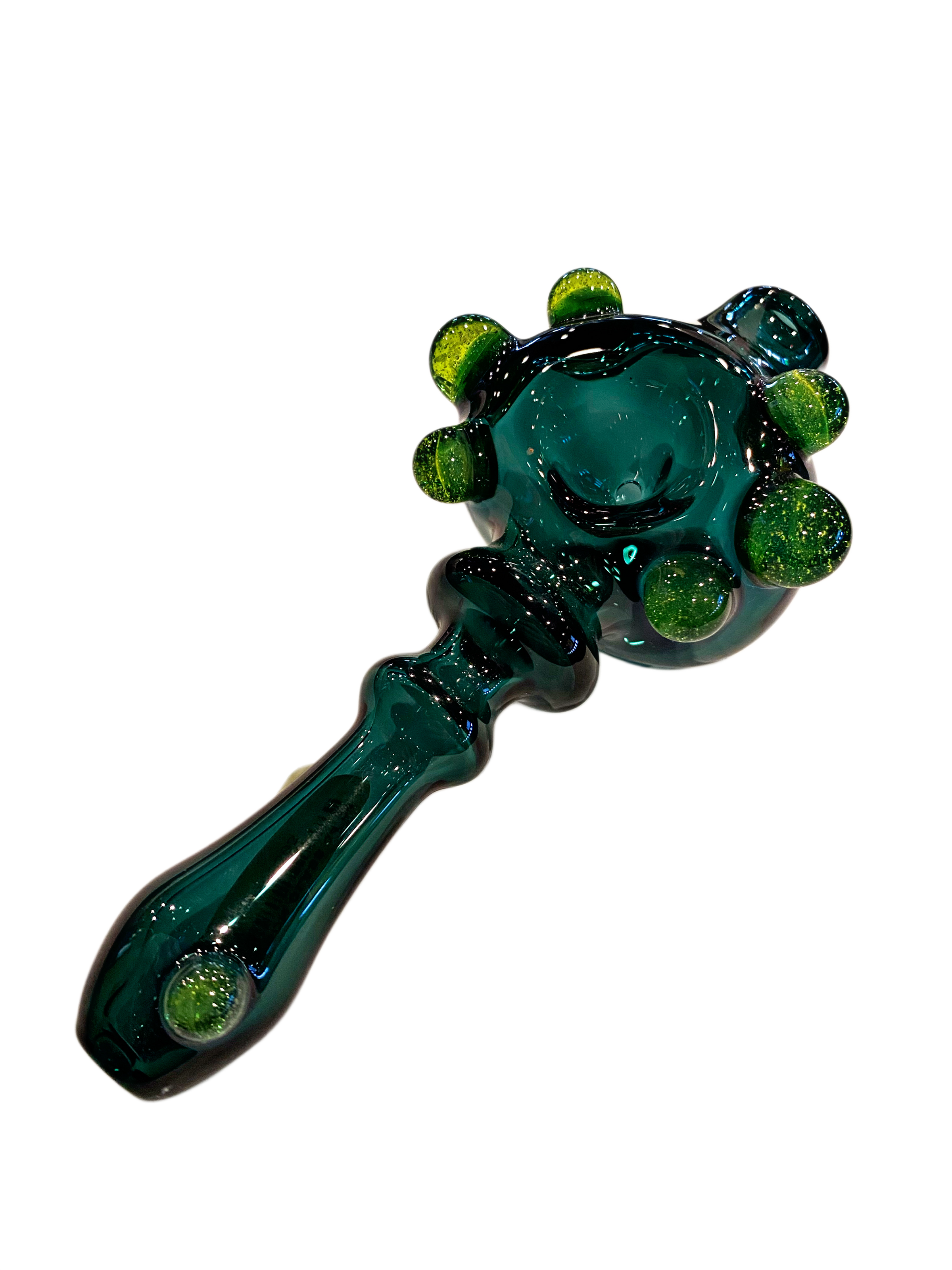 Nobby Straight Spoon Style Handpipe with Lime Green Nobs.